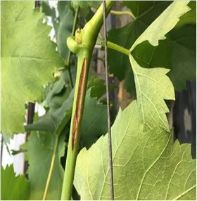 当葡萄缺钙时,幼叶脉间及叶缘会褪绿,随后在近叶缘处会出现针头大小的斑点,叶尖及叶缘会向下卷曲,几天后褪绿部分会变成暗褐色,并形成枯斑。这种症状可逐渐向下部叶扩展;茎蔓先端顶枯;新根短粗而弯曲,尖端容易变褐枯死;果实糖分积累少,果粉少,味淡,不耐贮藏。