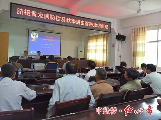 9月的赣南一丝秋意来袭,13日上午江西信丰铁石口镇下起了小雨,90多位脐橙种植大户冒雨赶来,参加红四方送来的“科技大餐”,大家足不出户就能享受到农家专家的技术服务。